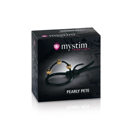 Pearly Pete de Mystim: intensité ciblée sur le gland, boucles réglables, silicone médical et billes dorées. Plaisir précis,...
