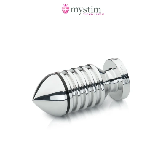 Plug anal Mystim compact en aluminium : initiation douce et électro-stimulation intense. Confort optimal, sensations inédites.