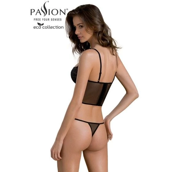 Seins nus, dentelle baroque et tulle doux: un set éco chic qui sublime le buste, assure confort quotidien et électrise vos jeux.