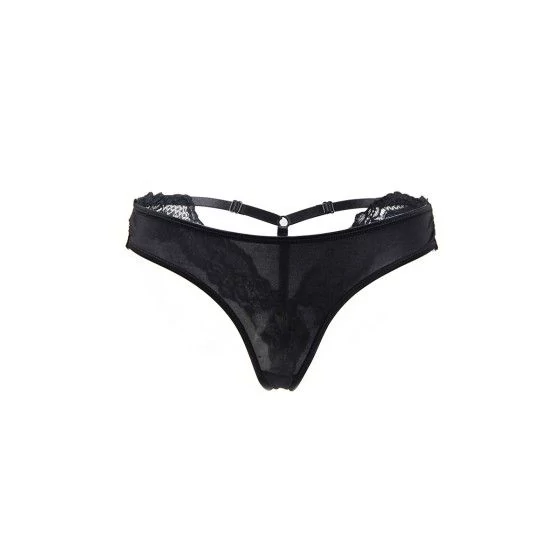 La longue fermeture à agrafes au dos permet un ajustement précis. Quatre jarretelles attendent vos bas (non fournis), tandis que les matières souples et respirantes se font oublier. Le string assorti en tulle et dentelle dispose d’un gousset coton, idéal pour un usage quotidien.