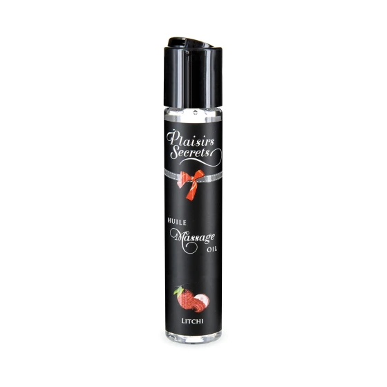Huile de massage litchi comestible, soyeuse et aphrodisiaque. Détente profonde, caresses gourmandes, qualité française pour un...